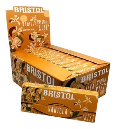 El producto en la imagen es un paquete de papelillos para enrolar de la marca Bristol, sabor Vainilla.