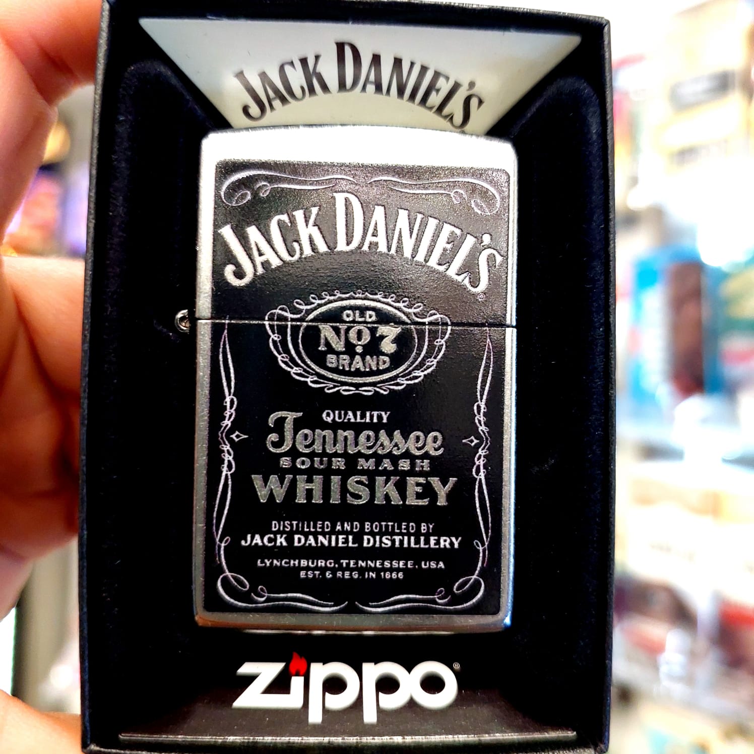 Este es un encendedor Zippo con el logo de la etiqueta de Jack Daniel’s.
